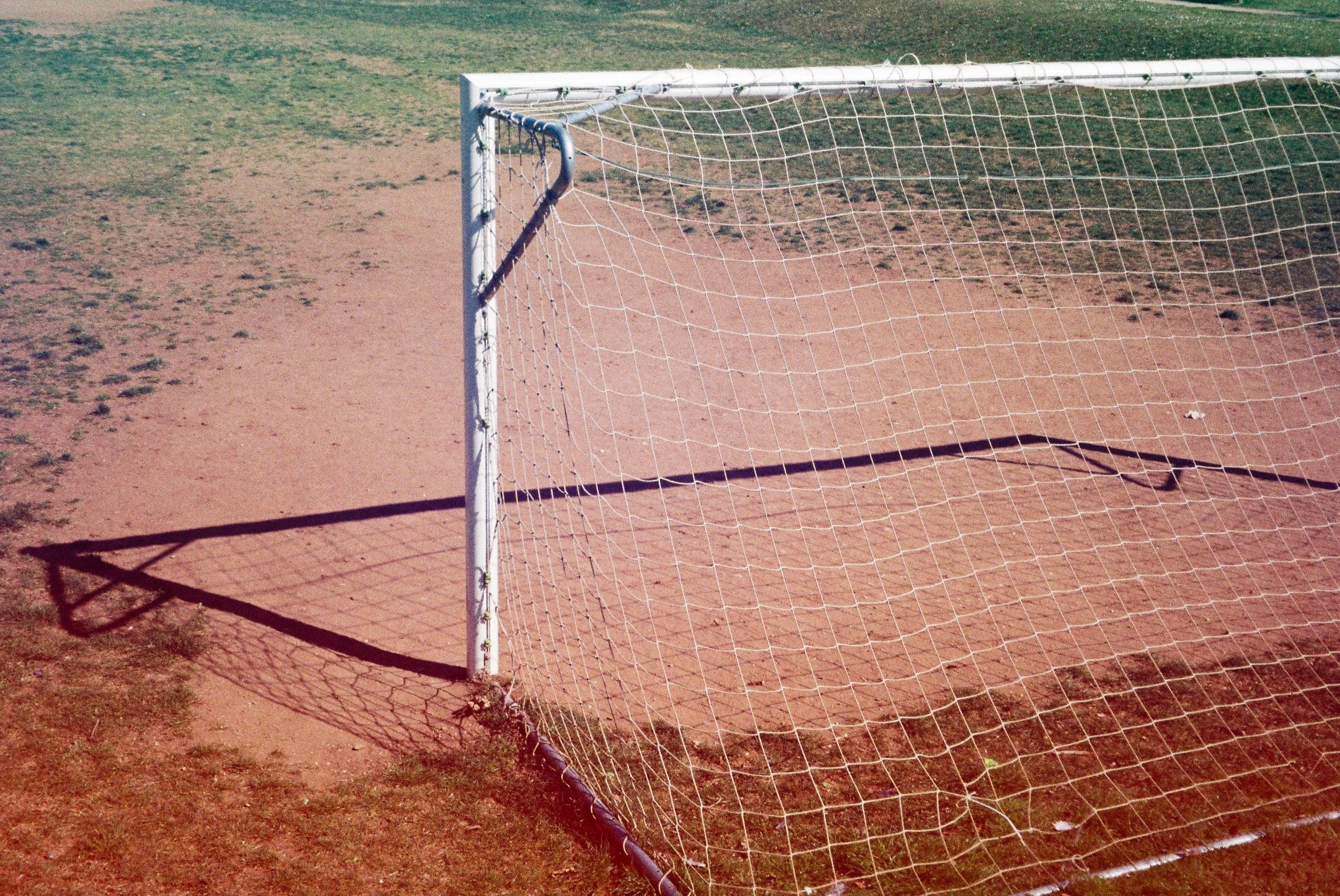 Ricordo che durante quella passeggiata pensavo a Luigi Ghirri — uno dei suoi soggetti ricorrenti sono le porte dei campi da calcio, e non ho resistito: uno dei primi scatti del rullino è proprio quello. Un piccolo omaggio consapevole a uno dei fotografi che in quel periodo mi stava influenzando di più.